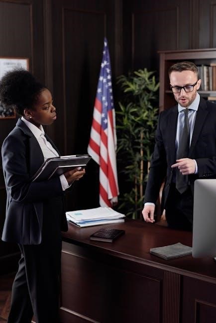 The Judiciary, led by the Supreme Court, plays a crucial role in interpreting laws and ensuring they align with the Constitution. Federal courts resolve disputes, and the Supreme Court has the final say on legal matters. Its decisions shape public policy, civil rights, and liberties, often influencing societal change. The Judiciary’s independence allows it to check the other branches, maintaining the balance of power. The book explores how judicial rulings impact governance, policy implementation, and individual freedoms, highlighting the Judiciary’s role in upholding the rule of law and its profound effects on American political dynamics and public opinion.